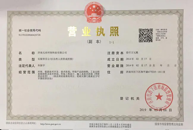 濟南兄弟環??萍加邢薰臼且患掖礓N售進口儀器儀表、環保技術開發、項目設計、設備制造、沼氣發電及配件、工程安裝、調試、運營、售后技術咨詢與服務為主的高新技術企業。